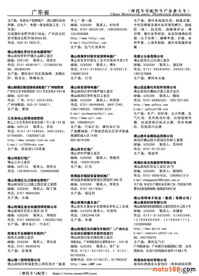 2010版摩托車配件生產(chǎn)企業(yè)大全
