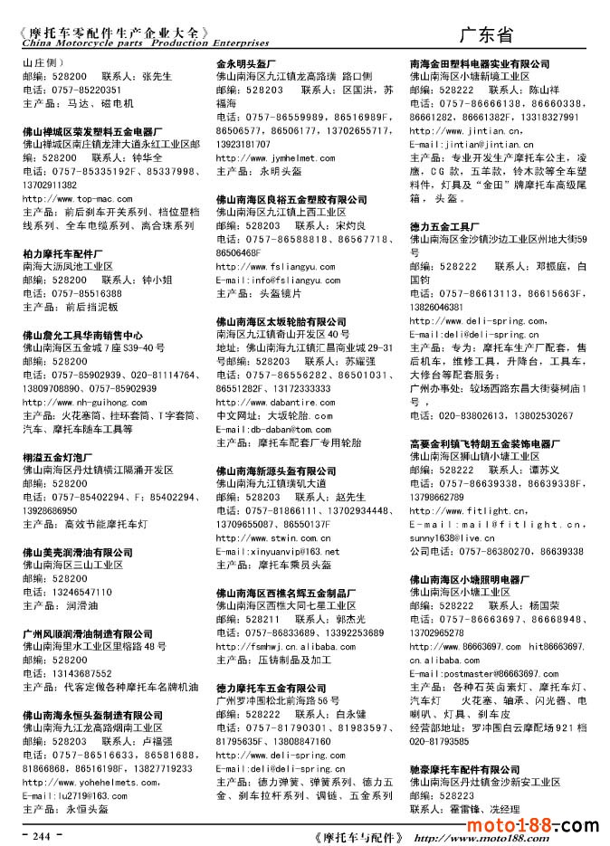 2010版摩托車配件生產(chǎn)企業(yè)大全