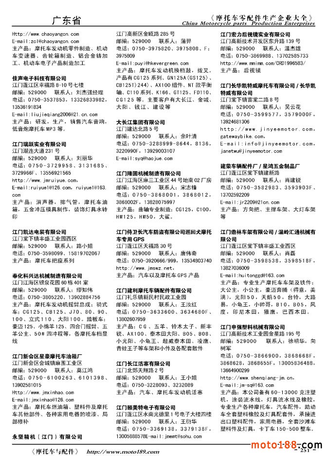 2010版摩托車(chē)配件生產(chǎn)企業(yè)大全