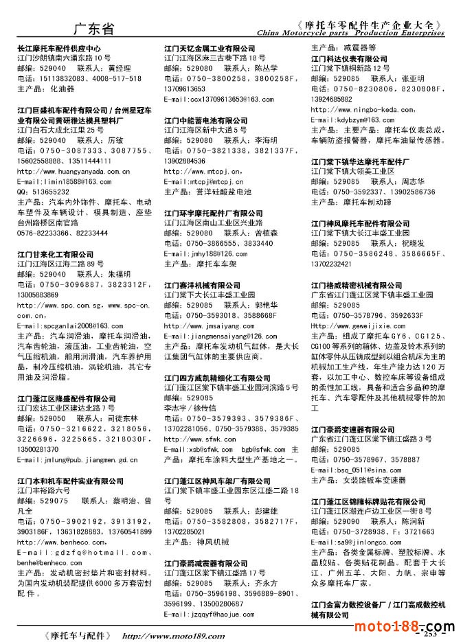 2010版摩托車配件生產(chǎn)企業(yè)大全