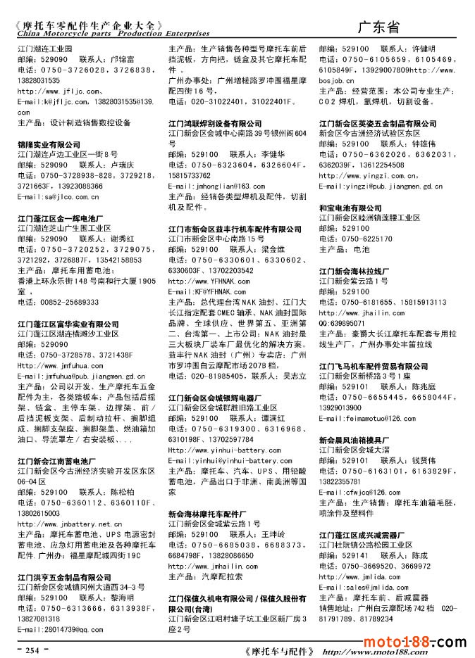 2010版摩托車配件生產(chǎn)企業(yè)大全