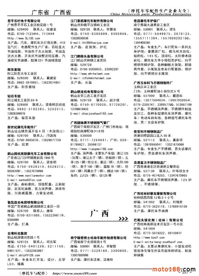 2010版摩托車配件生產(chǎn)企業(yè)大全
