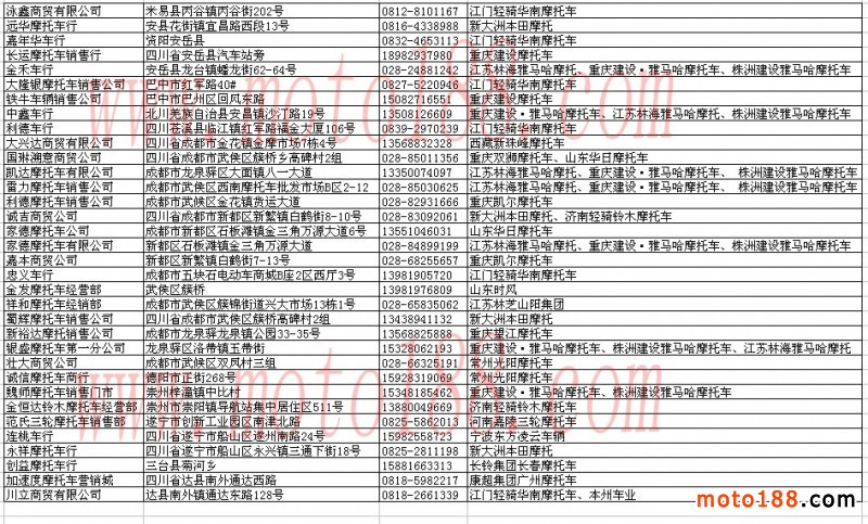四川省摩托車經(jīng)銷商