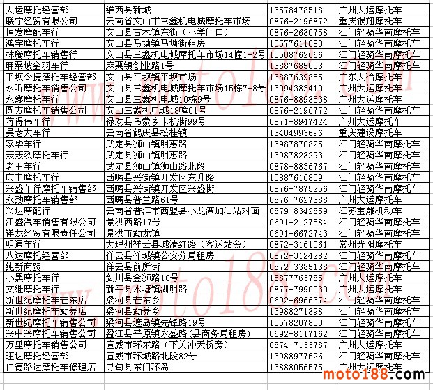 云南省摩托車經(jīng)銷商