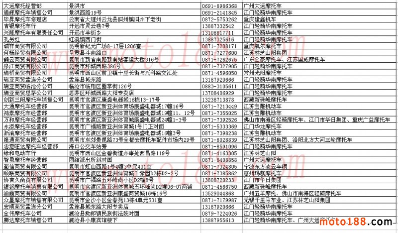 云南省摩托車經(jīng)銷商