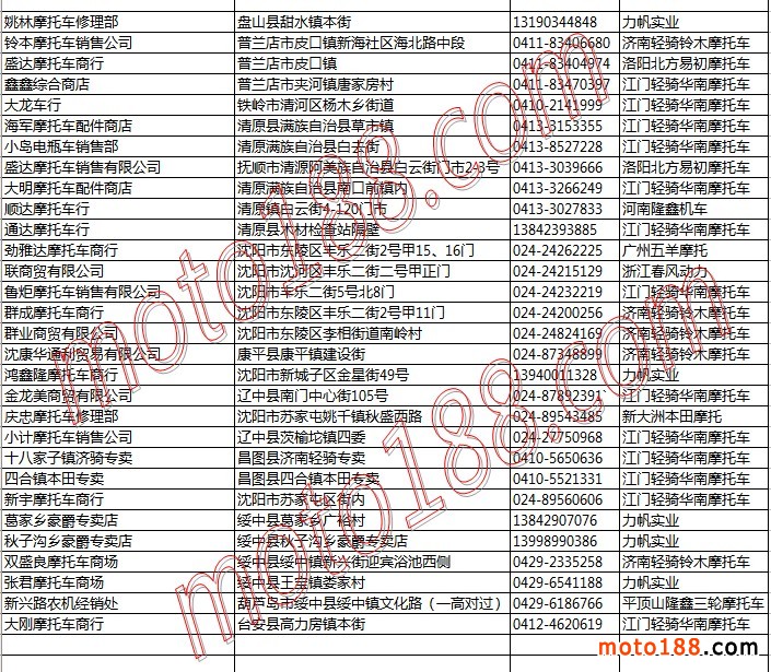 遼寧省摩托車整車經(jīng)銷商名錄