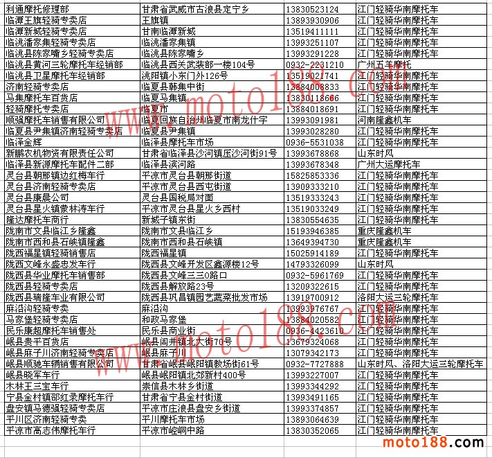 甘肅省整車經(jīng)銷商名錄