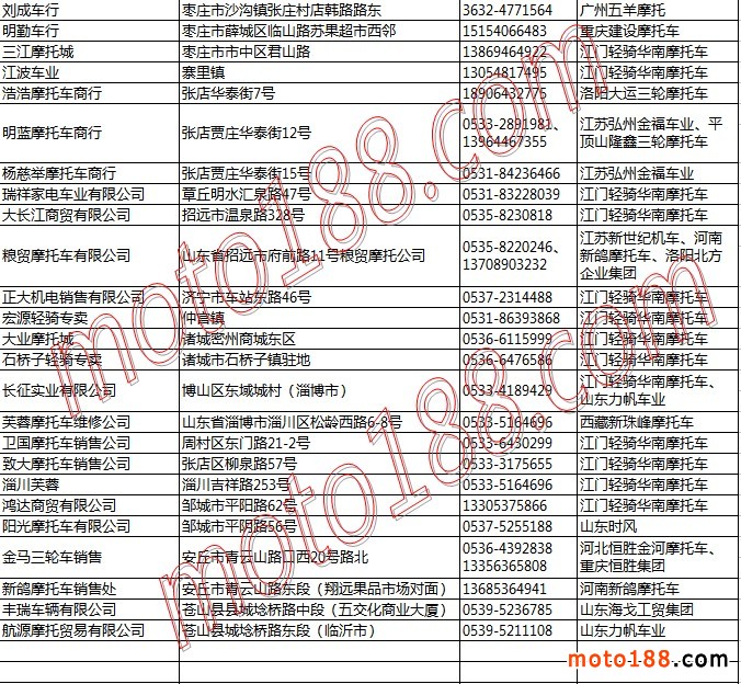 山東省摩托車(chē)整車(chē)經(jīng)銷(xiāo)商名錄