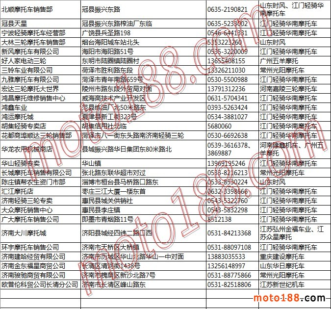 山東省摩托車整車經(jīng)銷商名錄