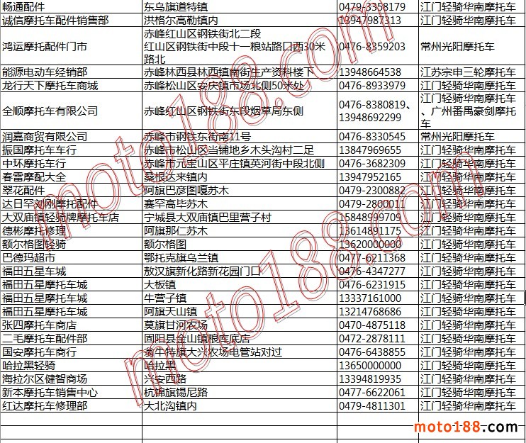 內(nèi)蒙古摩托車整車經(jīng)銷商名錄
