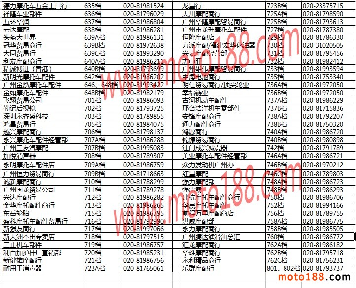 廣州白云摩配市場(chǎng)經(jīng)銷(xiāo)商名錄