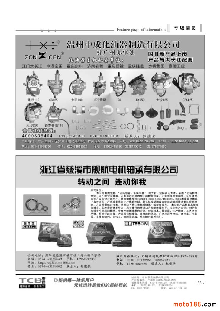 33 溫州中成化油器制造有限公司/慈溪市艦航電機軸承有限公司