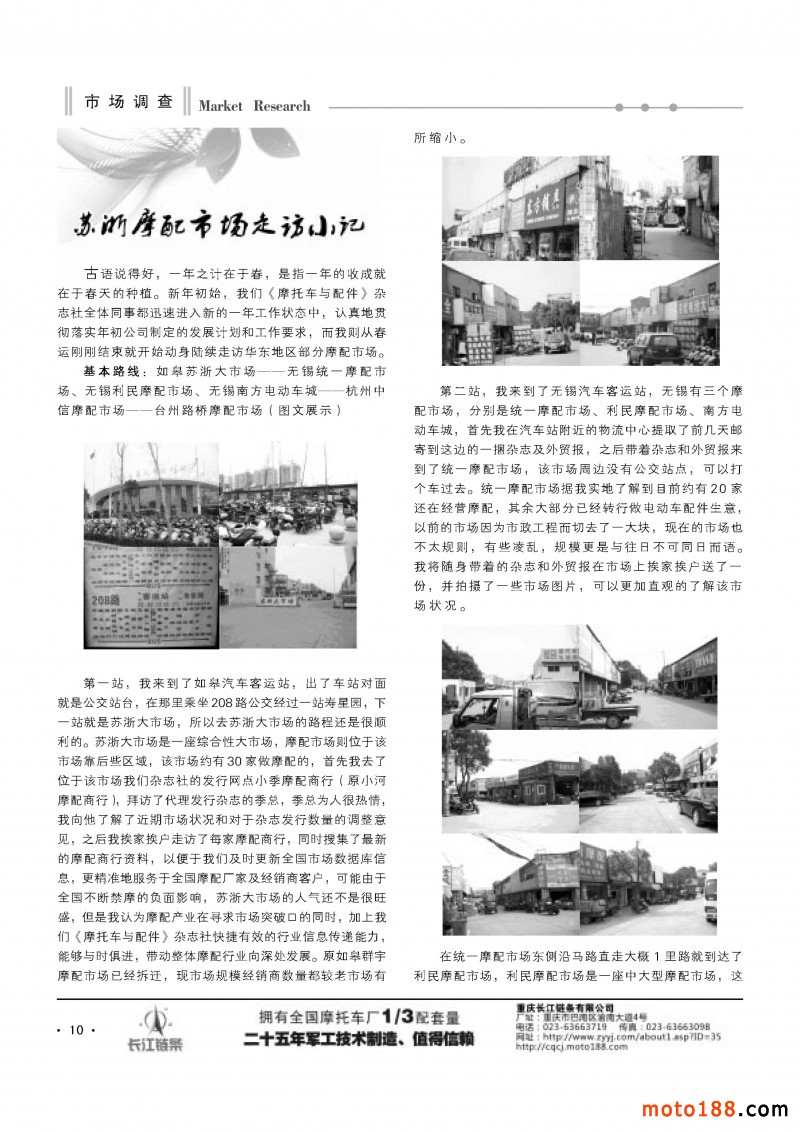 《摩托車與配件》自三月份正式改版后,雜志的    有較大的變化。因?yàn)槭莿倓偼瞥?,市?chǎng)還有一個(gè)適應(yīng)時(shí)期,尤其一些市場(chǎng)人士有顧慮,擔(dān)心頻率加快以后廣告的留存期縮短,還有擔(dān)心印刷量會(huì)下降。為了慎重起見,我們雜志社在春運(yùn)一結(jié)束后就安排部分人員去華東和華南及中南、西南等市場(chǎng)走了一遍。先后去了如皋、無(wú)錫、撫順、臺(tái)州以及商丘、鄭州、武漢、襄陽(yáng)、荊州、株洲、長(zhǎng)株潭、廣州、重慶、成都等市場(chǎng),行程在隴海線南邊走了一圈。到市場(chǎng)第一線汲取客戶的意見,了解市場(chǎng)的發(fā)行,調(diào)整了部分發(fā)行點(diǎn),并新建和恢復(fù)了六個(gè)發(fā)行點(diǎn),進(jìn)一步完善市場(chǎng)的發(fā)行。雜志改刊后不僅僅是期數(shù)的變化,更是一個(gè)系統(tǒng)的工作,這涉及到我們服務(wù)的提升,整個(gè)系統(tǒng)的升級(jí)。在這一期雜志內(nèi),我們會(huì)用一定的篇幅介紹我們所走過(guò)的市場(chǎng)的具體狀況。目前我們是行業(yè)長(zhǎng)期調(diào)整以來(lái)僅存的專業(yè)媒體,一方面我們面臨市場(chǎng)的風(fēng)險(xiǎn),如果不努力我們也會(huì)和前面已經(jīng)淪陷的媒體一樣,被市場(chǎng)拋棄。另一方面來(lái)自我們內(nèi)部及系統(tǒng)內(nèi)的風(fēng)險(xiǎn),即我們的管理和服務(wù)是否和雜志升級(jí)一樣,也在同步提升?我們面臨新的改革發(fā)展機(jī)會(huì),我們能否把握住、把握好?在進(jìn)行科學(xué)的發(fā)展時(shí),不能因?yàn)樘?nbsp;太快而摔跤,所以我們雜志在今年的發(fā)展目標(biāo)是:緊跟市場(chǎng)、穩(wěn)中求進(jìn)。在外銷市場(chǎng)面臨銷售不暢的現(xiàn)實(shí)情況下,如何服務(wù)好內(nèi)需內(nèi)銷市場(chǎng),這也是我們和生產(chǎn)型企業(yè)共同要探討的課題。通過(guò)對(duì)市場(chǎng)的走訪,我們有了目標(biāo)和方向,也有了信心和動(dòng)力。正因?yàn)榇?,我們?nèi)路萃瞥鲭p期后所產(chǎn)生的一系列問(wèn)題,我們都在妥善應(yīng)對(duì)。今年四月份濟(jì)南會(huì)議,我們會(huì)展現(xiàn)我們?nèi)ザ翊旱膭趧?dòng)成果: