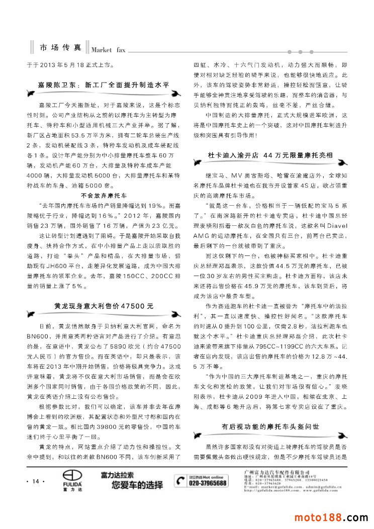 有較大的變化。因為是剛剛推出,市場還有一個適應(yīng)時期,尤其一些市場人士有顧慮,擔(dān)心頻率加快以后廣告的留存期縮短,還有擔(dān)心印刷量會下降。為了慎重起見,我們雜志社在春運一結(jié)束后就安排部分人員去華東和華南及中南、西南等市場走了一遍。先后去了如皋、無錫、撫順、臺州以及商丘、鄭州、武漢、襄陽、荊州、株洲、長株潭、廣州、重慶、成都等市場,行程在隴海線南邊走了一圈。到市場第一線汲取客戶的意見,了解市場的發(fā)行,調(diào)整了部分發(fā)行點,并新建和恢復(fù)了六個發(fā)行點,進一步完善市場的發(fā)行。雜志改刊后不僅僅是期數(shù)的變化,更是一個系統(tǒng)的工作,這涉及到我們服務(wù)的提升,整個系統(tǒng)的升級。在這一期雜志內(nèi),我們會用一定的篇幅介紹我們所走過的市場的具體狀況。目前我們是行業(yè)長期調(diào)整以來僅存的專業(yè)媒體,一方面我們面臨市場的風(fēng)險,如果不努力我們也會和前面已經(jīng)淪陷的媒體一樣,被市場拋棄。另一方面來自我們內(nèi)部及系統(tǒng)內(nèi)的風(fēng)險,即我們的管理和服務(wù)是否和雜志升級一樣,也在同步提升?我們面臨新的改革發(fā)展機會,我們能否把握住、把握好?在進行科學(xué)的發(fā)展時,不能因為太 太快而摔跤,所以我們雜志在今年的發(fā)展目標(biāo)是:緊跟市場、穩(wěn)中求進。在外銷市場面臨銷售不暢的現(xiàn)實情況下,如何服務(wù)好內(nèi)需內(nèi)銷市場,這也是我們和生產(chǎn)型企業(yè)共同要探討的課題。通過對市場的走訪,我們有了目標(biāo)和方向,也有了信心和動力。正因為此,我們?nèi)路萃瞥鲭p期后所產(chǎn)生的一系列問題,我們都在妥善應(yīng)對。今年四月份濟南會議,我們會展現(xiàn)我們?nèi)ザ翊旱膭趧映晒?/div>