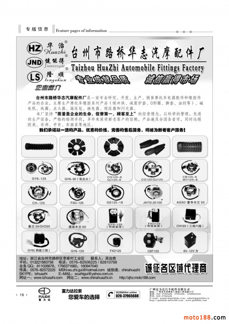 3、《中國摩托車配件生產(chǎn)企業(yè)大全(網(wǎng)址總匯)》第十一次升級版,在會上及各大市場同時發(fā)送。全國大市場還會送書上門,沒參會的企業(yè)可在門上坐等,愿意付郵費(fèi)(快遞到付也可)的企業(yè)我們都會快遞送達(dá)。