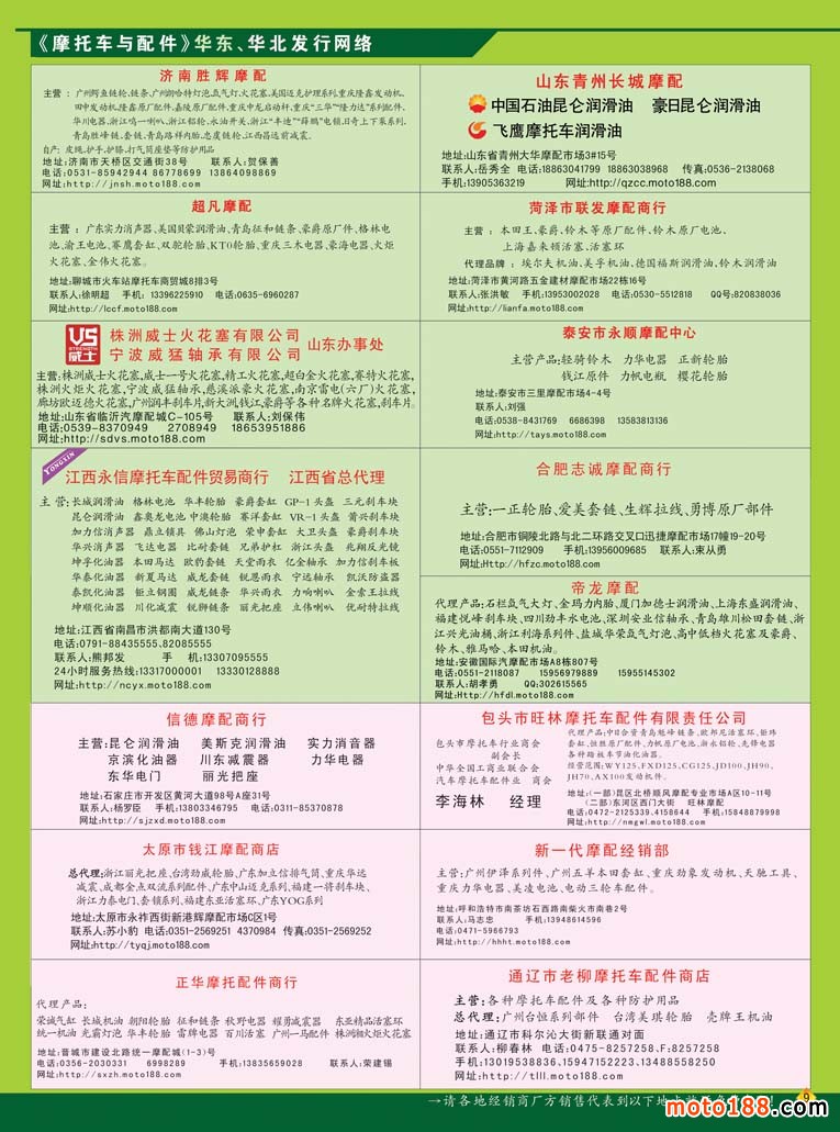 3、《中國(guó)摩托車(chē)配件生產(chǎn)企業(yè)大全(網(wǎng)址總匯)》第十一次升級(jí)版,在會(huì)上及各大市場(chǎng)同時(shí)發(fā)送。全國(guó)大市場(chǎng)還會(huì)送書(shū)上門(mén),沒(méi)參會(huì)的企業(yè)可在門(mén)上坐等,愿意付郵費(fèi)(快遞到付也可)的企業(yè)我們都會(huì)快遞送達(dá)。