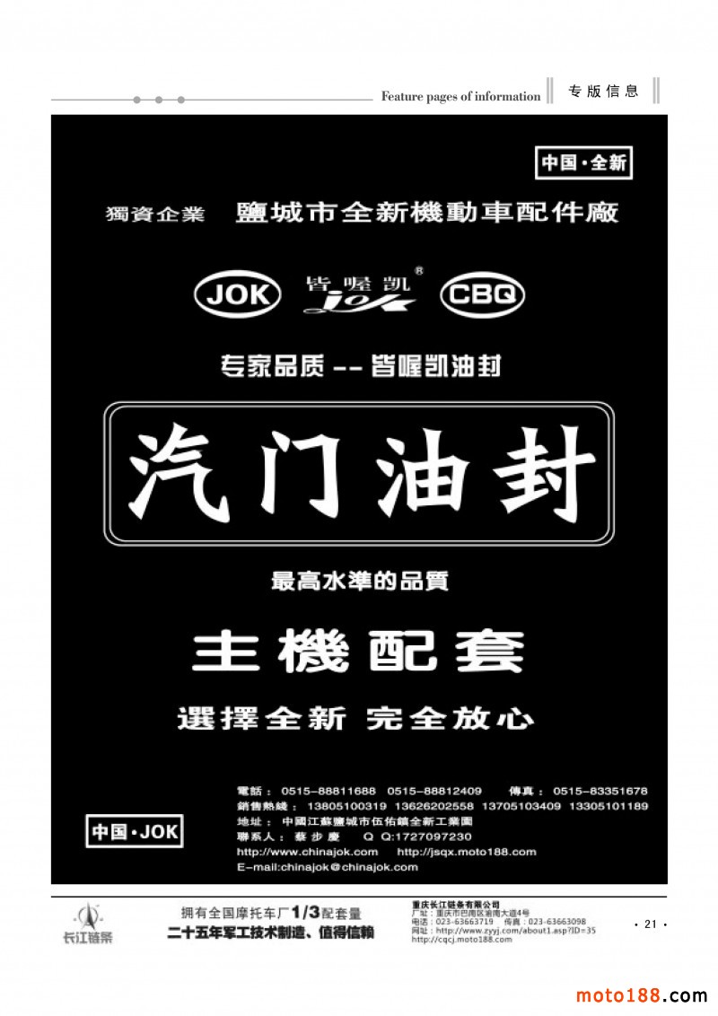 3、《中國摩托車配件生產(chǎn)企業(yè)大全(網(wǎng)址總匯)》第十一次升級版,在會上及各大市場同時(shí)發(fā)送。全國大市場還會送書上門,沒參會的企業(yè)可在門上坐等,愿意付郵費(fèi)(快遞到付也可)的企業(yè)我們都會快遞送達(dá)。