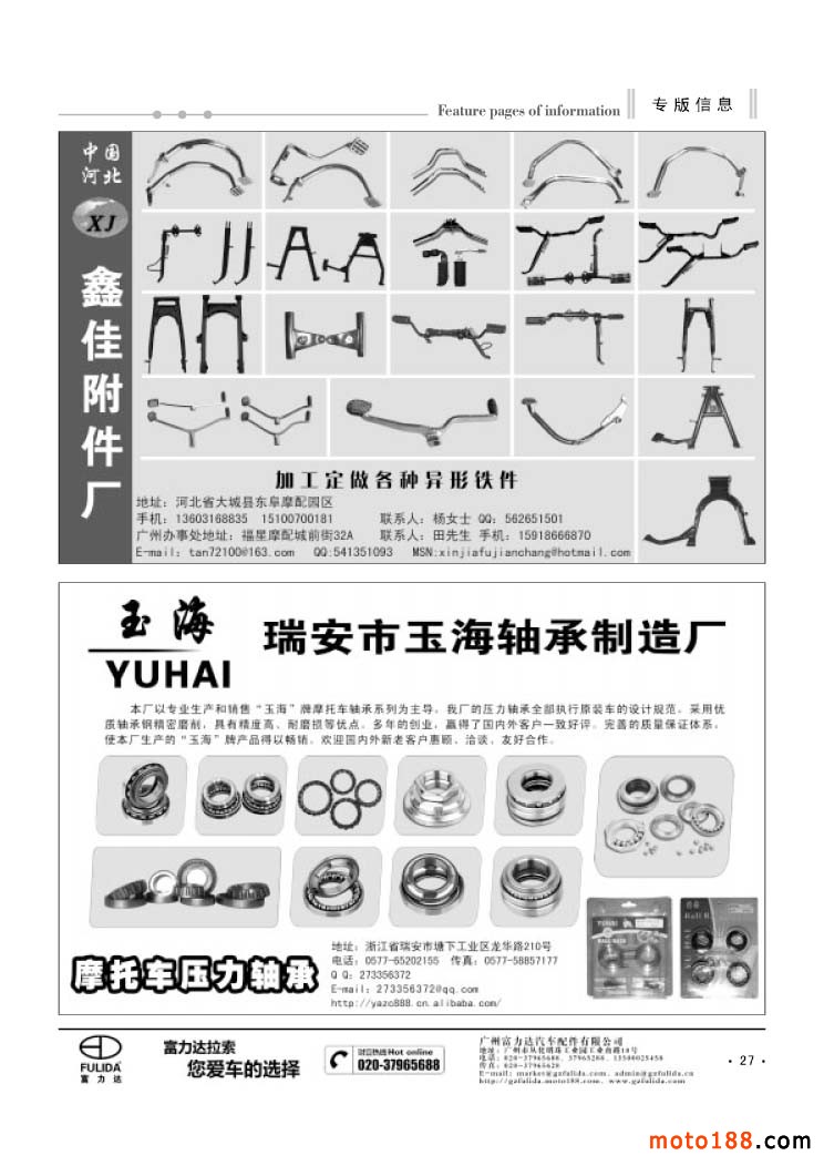 3、《中國(guó)摩托車配件生產(chǎn)企業(yè)大全(網(wǎng)址總匯)》第十一次升級(jí)版,在會(huì)上及各大市場(chǎng)同時(shí)發(fā)送。全國(guó)大市場(chǎng)還會(huì)送書上門,沒參會(huì)的企業(yè)可在門上坐等,愿意付郵費(fèi)(快遞到付也可)的企業(yè)我們都會(huì)快遞送達(dá)。