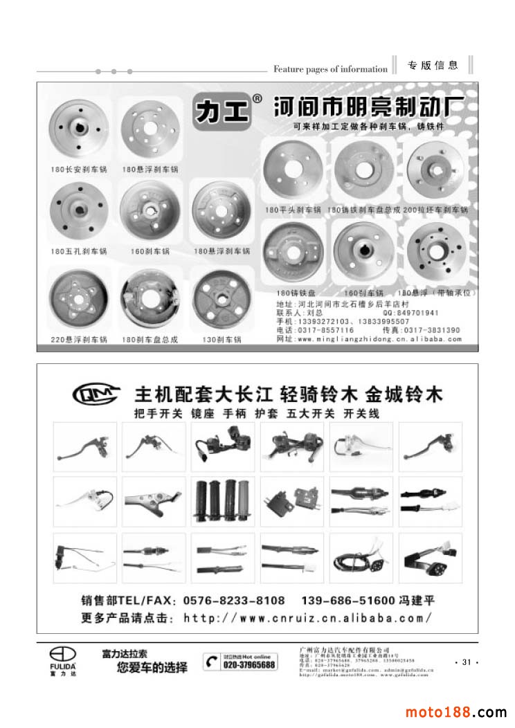 3、《中國摩托車配件生產(chǎn)企業(yè)大全(網(wǎng)址總匯)》第十一次升級版,在會上及各大市場同時發(fā)送。全國大市場還會送書上門,沒參會的企業(yè)可在門上坐等,愿意付郵費(快遞到付也可)的企業(yè)我們都會快遞送達。