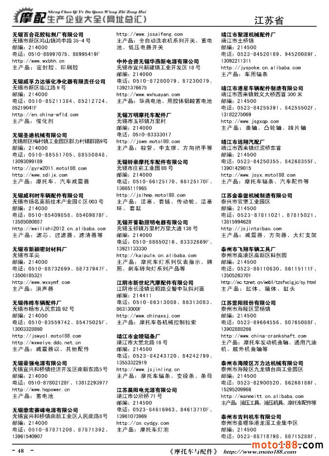 《摩托車與配件生產(chǎn)企業(yè)大全》打造行業(yè)信息的航母