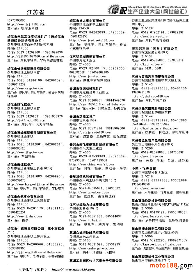 《摩托車與配件生產(chǎn)企業(yè)大全》打造行業(yè)信息的航母
