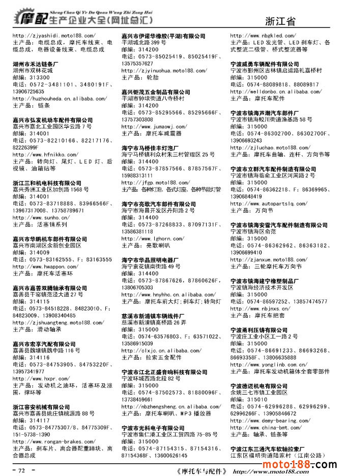 《摩托車與配件生產(chǎn)企業(yè)大全》打造行業(yè)信息的航母