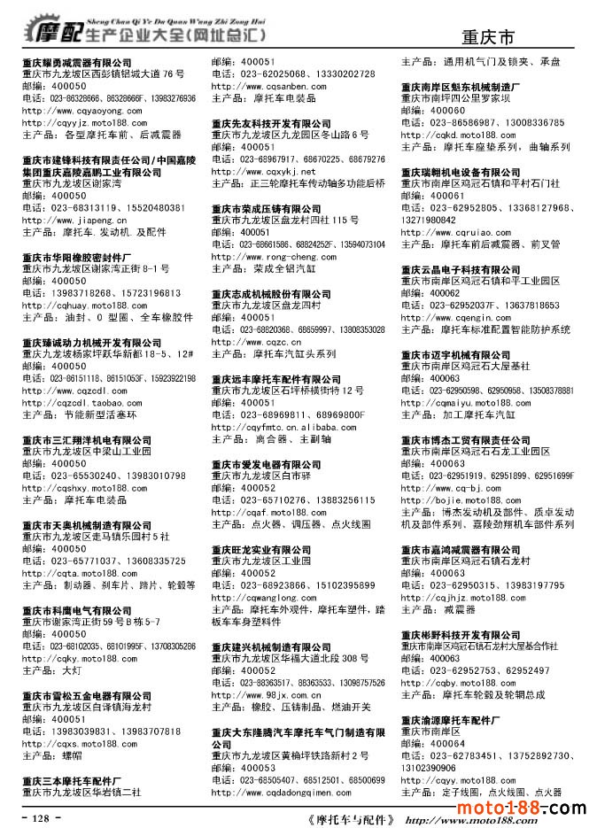 《摩托車(chē)與配件生產(chǎn)企業(yè)大全》打造行業(yè)信息的航母