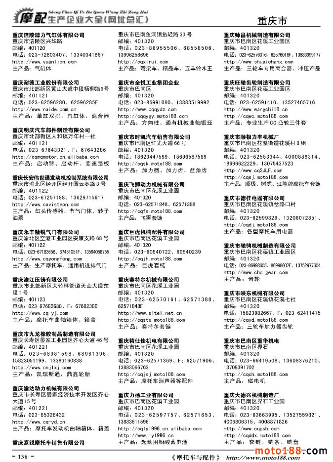 《摩托車與配件生產(chǎn)企業(yè)大全》打造行業(yè)信息的航母