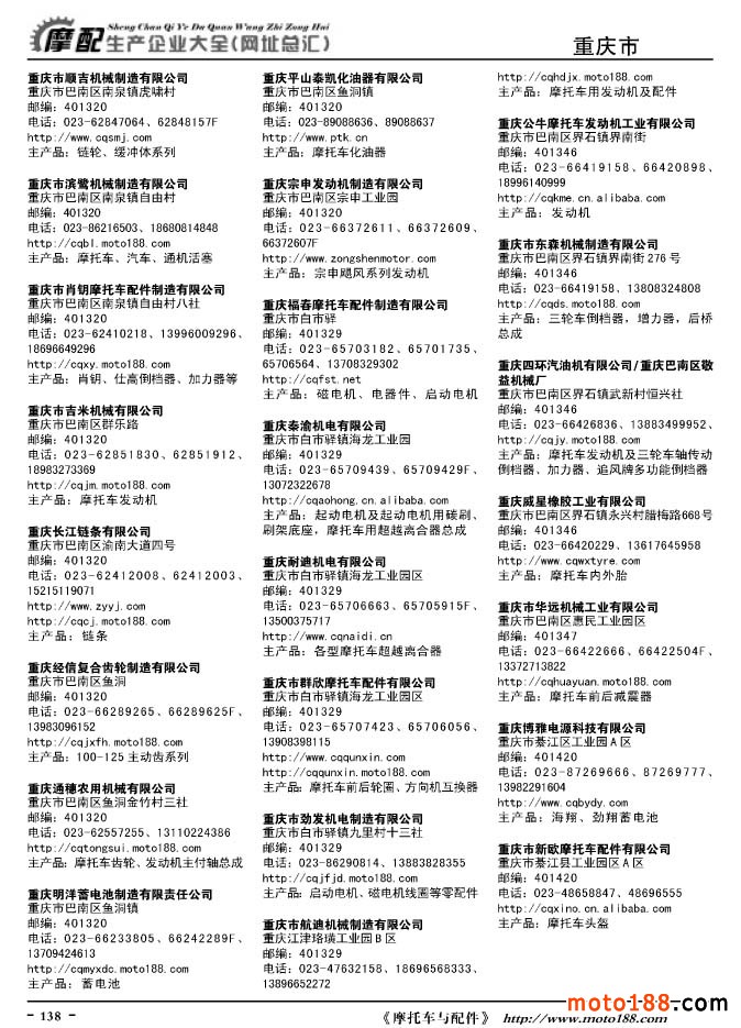 《摩托車(chē)與配件生產(chǎn)企業(yè)大全》打造行業(yè)信息的航母