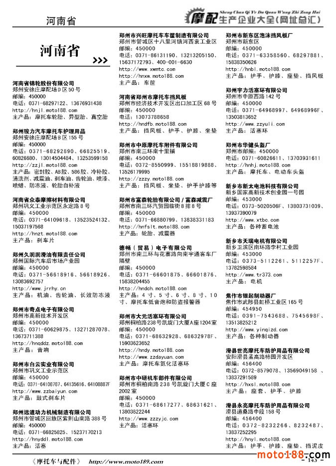 《摩托車與配件生產(chǎn)企業(yè)大全》打造行業(yè)信息的航母