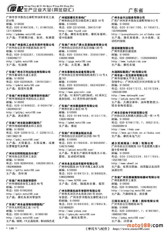 《摩托車與配件生產(chǎn)企業(yè)大全》打造行業(yè)信息的航母