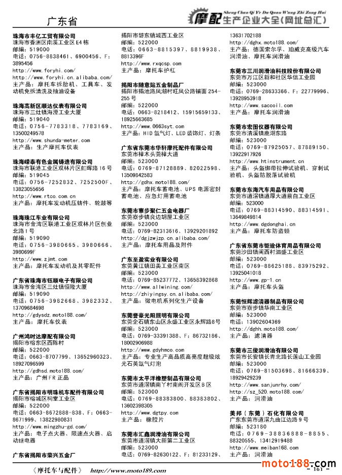 《摩托車與配件生產(chǎn)企業(yè)大全》打造行業(yè)信息的航母