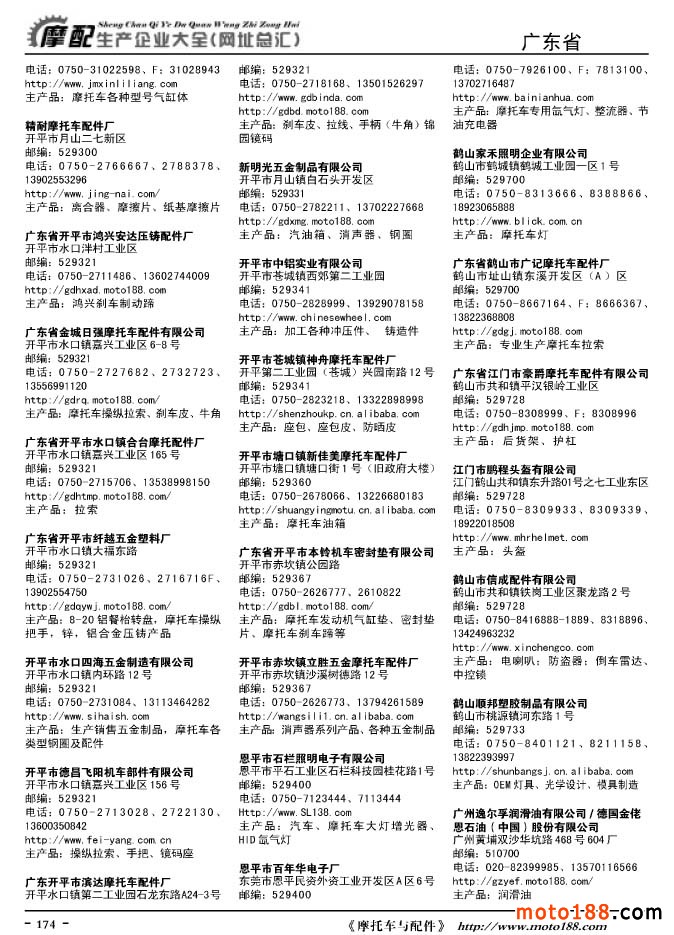 《摩托車與配件生產(chǎn)企業(yè)大全》打造行業(yè)信息的航母