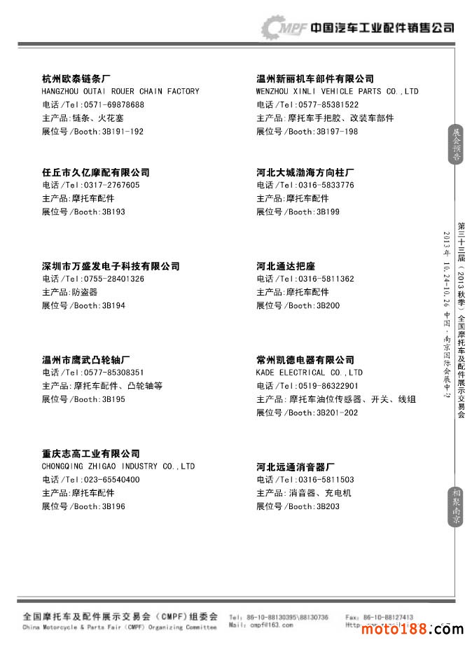第33屆春季(濟南)全國摩托車及配件展示交易會參展企業(yè)名錄
