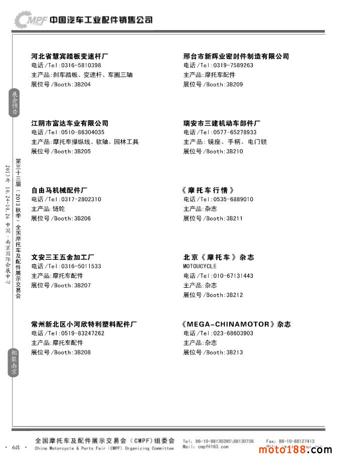 第33屆春季(濟(jì)南)全國摩托車及配件展示交易會(huì)參展企業(yè)名錄