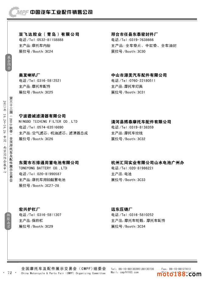 第33屆春季(濟南)全國摩托車及配件展示交易會參展企業(yè)名錄