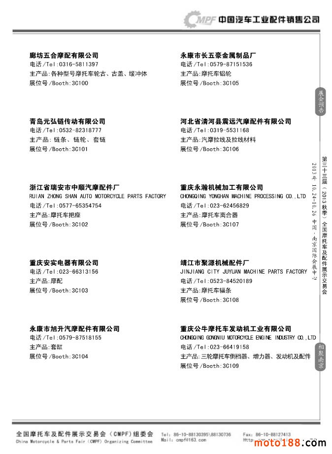 第33屆春季(濟(jì)南)全國(guó)摩托車及配件展示交易會(huì)參展企業(yè)名錄