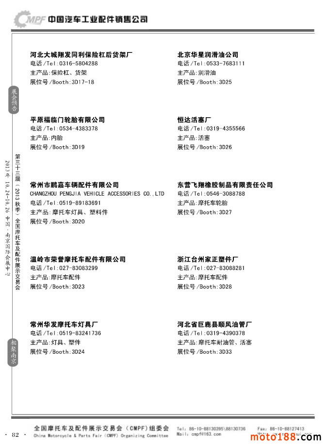 第33屆春季(濟(jì)南)全國(guó)摩托車及配件展示交易會(huì)參展企業(yè)名錄
