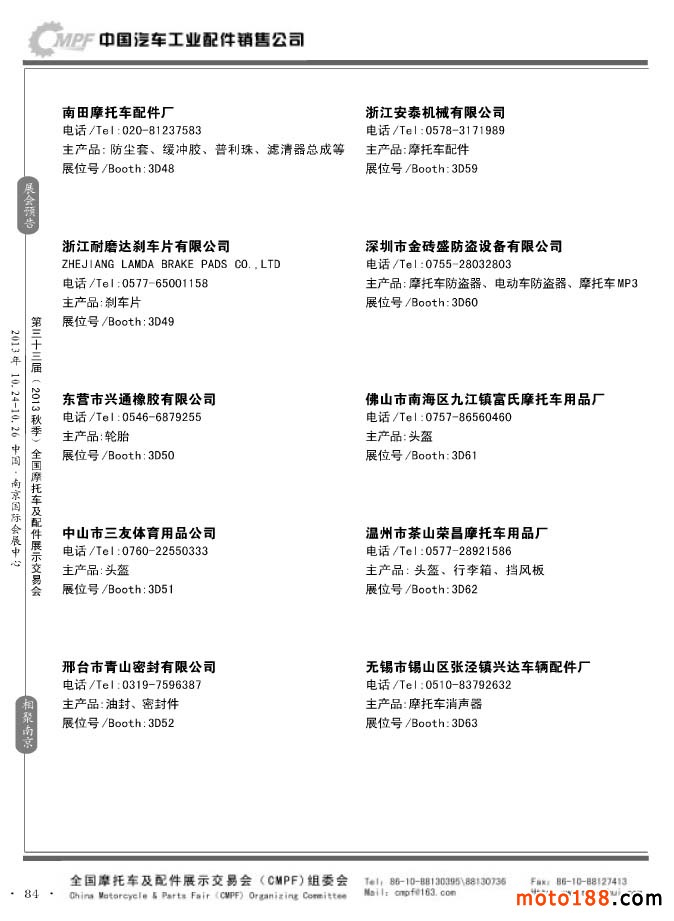 第33屆春季(濟(jì)南)全國摩托車及配件展示交易會參展企業(yè)名錄