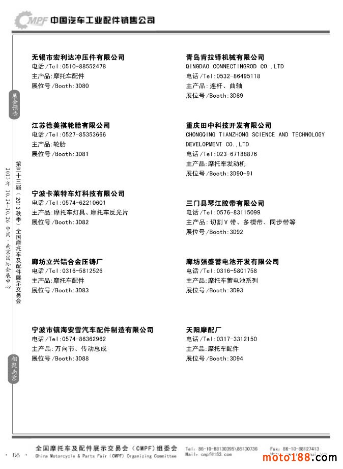 第33屆春季(濟南)全國摩托車及配件展示交易會參展企業(yè)名錄