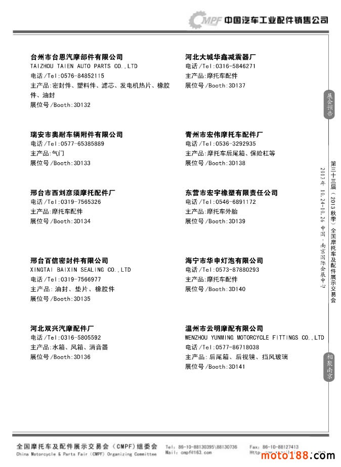 第33屆春季(濟南)全國摩托車及配件展示交易會參展企業(yè)名錄