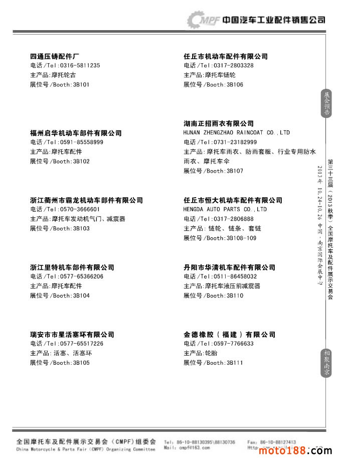 第33屆春季(濟(jì)南)全國(guó)摩托車及配件展示交易會(huì)參展企業(yè)名錄