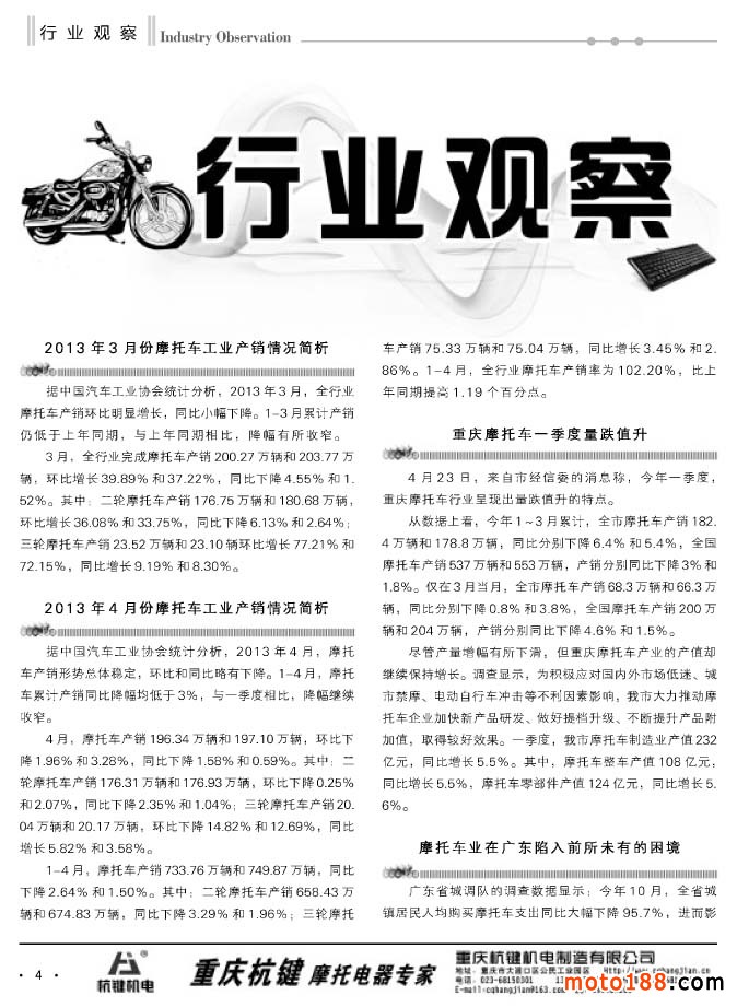 “鋤禾日當午,汗滴禾下土,誰知盤中餐,粒粒皆辛苦。”有了這樣的辛苦,才會有收獲的喜悅。《摩托車與配件》之所以在全行業(yè)不景氣的大環(huán)境下,還能保持較高的增長速度也正是因為有了這樣的付出,天道酬勤。