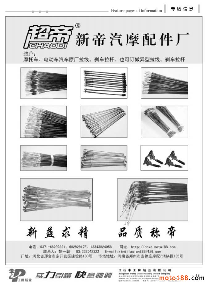 在4月29日全摩會結(jié)束之后,也有兩個與行業(yè)有關(guān)的會議,即5月6日的第23屆中國國際自行車展覽暨2013年中國國際摩托車及零部件交易會在上海新國際展覽中心召開。這次會議是以自行車及配件唱主角,電動車和摩托車作為配角而舉辦的大型會議,這次會議在自行車行業(yè)是規(guī)模最大的會議。與我們摩托車行業(yè)有關(guān)的一些從事外貿(mào)的整車廠,如建設(shè)、錢江等四五家廠家在附展館有一專門展廳。另外,輪胎企業(yè)有一個專門的展館,展品是外胎和內(nèi)胎。其中外胎來的大廠較多,也較全,比如正新、建大、朝陽,國內(nèi)有影響力的都基本來參會了,是這次會議的亮點(diǎn)。上海會議結(jié)束后,我們帶了部分外貿(mào)報紙和雜志在上海幾個市場進(jìn)行了發(fā)放,同時走訪了這些市場。自去年上半年,宜川市場拆遷后,在古浪路和滬太路分別形成了兩個市場。我們?nèi)チ嗣恳患疑虘?,收集市場客戶資料,為我們今年下半年《華東市場指南》的出版進(jìn)行準(zhǔn)備。這兩個市場都不算大,每一個市場有六七十戶做摩配生意的,有不少商家就是從宜川市場搬來的。還有兩個小市場,科雄和星中路市場,商戶比年初又有減少,市場明顯在萎縮。我們這次的《華東市場指南升級版》原準(zhǔn)備將江西不收錄其中,準(zhǔn)備和中南地區(qū)一起編入,但如果華東市場萎縮輻度較大,江西省還將編入華東地區(qū)。