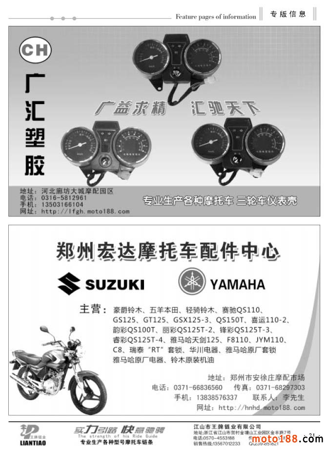 在4月29日全摩會結(jié)束之后,也有兩個與行業(yè)有關(guān)的會議,即5月6日的第23屆中國國際自行車展覽暨2013年中國國際摩托車及零部件交易會在上海新國際展覽中心召開。這次會議是以自行車及配件唱主角,電動車和摩托車作為配角而舉辦的大型會議,這次會議在自行車行業(yè)是規(guī)模最大的會議。與我們摩托車行業(yè)有關(guān)的一些從事外貿(mào)的整車廠,如建設(shè)、錢江等四五家廠家在附展館有一專門展廳。另外,輪胎企業(yè)有一個專門的展館,展品是外胎和內(nèi)胎。其中外胎來的大廠較多,也較全,比如正新、建大、朝陽,國內(nèi)有影響力的都基本來參會了,是這次會議的亮點。上海會議結(jié)束后,我們帶了部分外貿(mào)報紙和雜志在上海幾個市場進(jìn)行了發(fā)放,同時走訪了這些市場。自去年上半年,宜川市場拆遷后,在古浪路和滬太路分別形成了兩個市場。我們?nèi)チ嗣恳患疑虘簦占袌隹蛻糍Y料,為我們今年下半年《華東市場指南》的出版進(jìn)行準(zhǔn)備。這兩個市場都不算大,每一個市場有六七十戶做摩配生意的,有不少商家就是從宜川市場搬來的。還有兩個小市場,科雄和星中路市場,商戶比年初又有減少,市場明顯在萎縮。我們這次的《華東市場指南升級版》原準(zhǔn)備將江西不收錄其中,準(zhǔn)備和中南地區(qū)一起編入,但如果華東市場萎縮輻度較大,江西省還將編入華東地區(qū)。