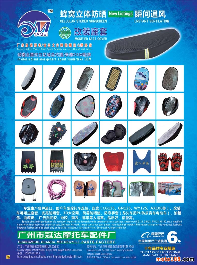 在這個淡季里,我們還將去西北和東北送書、送報上萬,走訪調研這些地區(qū)的市場。再次強調,我們送的書是今年上半年在濟南全摩會首發(fā)的新版《中國摩托車配件生產企業(yè)大全》,送的報紙是《摩托車與配件外貿報》。我們的雜志還是由全國各發(fā)行點直接發(fā)放給市場上的經營商戶。目前《大全》已完成在山東、河北、廣東和重慶等省市的主要市場的發(fā)行。今年年底之前完成對全國市場的投放。