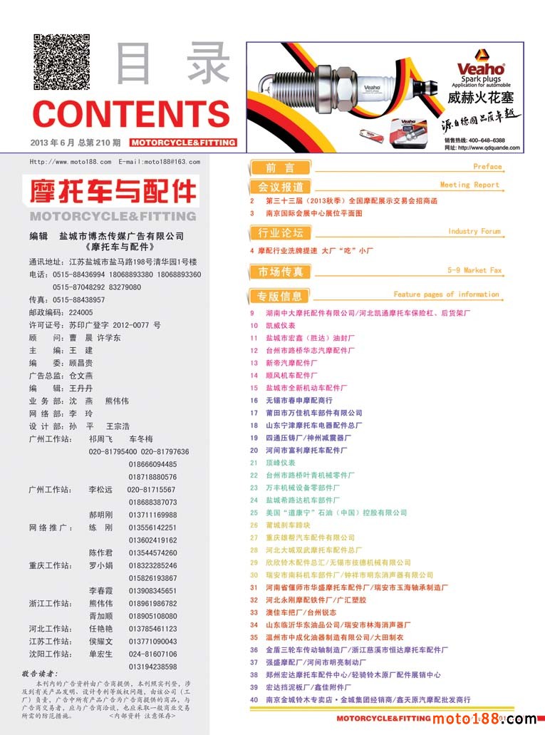 時節(jié)即將進入盛夏了,南方的天氣也越來越熱,國內的內銷市場,尤其是南方地區(qū)的市場將轉成淡季。根據我們今年的出刊計劃,我們從這個月也就是六月份開始至八月份每月出一期雜志。本期雜志是在六月中旬出刊;7月雜志將在七月上旬出刊,同時在中旬還會出刊今年的第三期《摩托車與配件外貿報》即夏季版(十月出刊秋季版);八月初出刊8月版;八月底至九月初出刊9月上半期雜志,十月中下旬出刊9月下半期雜志。請大家注意我們的出刊日期,及時 到我們的發(fā)行點領取。我們也會在moto188網站的公告欄及時通知大家雜志發(fā)貨的具體時間。
