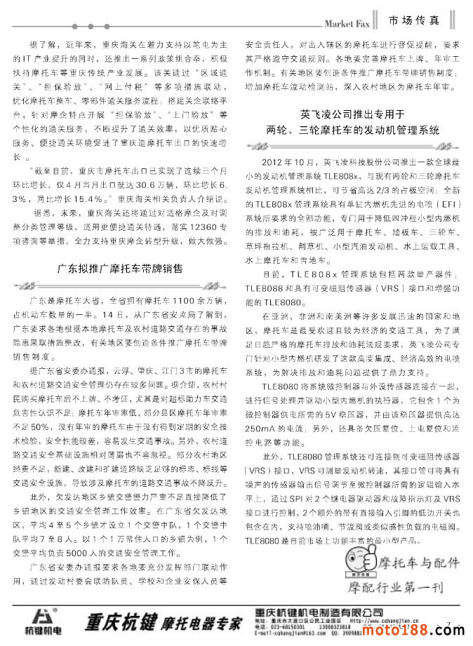 時(shí)節(jié)即將進(jìn)入盛夏了,南方的天氣也越來(lái)越熱,國(guó)內(nèi)的內(nèi)銷(xiāo)市場(chǎng),尤其是南方地區(qū)的市場(chǎng)將轉(zhuǎn)成淡季。根據(jù)我們今年的出刊計(jì)劃,我們從這個(gè)月也就是六月份開(kāi)始至八月份每月出一期雜志。本期雜志是在六月中旬出刊;7月雜志將在七月上旬出刊,同時(shí)在中旬還會(huì)出刊今年的第三期《摩托車(chē)與配件外貿(mào)報(bào)》即夏季版(十月出刊秋季版);八月初出刊8月版;八月底至九月初出刊9月上半期雜志,十月中下旬出刊9月下半期雜志。請(qǐng)大家注意我們的出刊日期,及時(shí) 到我們的發(fā)行點(diǎn)領(lǐng)取。我們也會(huì)在moto188網(wǎng)站的公告欄及時(shí)通知大家雜志發(fā)貨的具體時(shí)間。