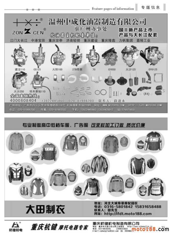 在這個淡季里,我們還將去西北和東北送書、送報上萬,走訪調(diào)研這些地區(qū)的市場。再次強(qiáng)調(diào),我們送的書是今年上半年在濟(jì)南全摩會首發(fā)的新版《中國摩托車配件生產(chǎn)企業(yè)大全》,送的報紙是《摩托車與配件外貿(mào)報》。我們的雜志還是由全國各發(fā)行點(diǎn)直接發(fā)放給市場上的經(jīng)營商戶。目前《大全》已完成在山東、河北、廣東和重慶等省市的主要市場的發(fā)行。今年年底之前完成對全國市場的投放。