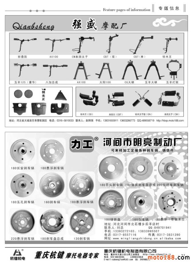 在這個(gè)淡季里,我們還將去西北和東北送書、送報(bào)上萬,走訪調(diào)研這些地區(qū)的市場。再次強(qiáng)調(diào),我們送的書是今年上半年在濟(jì)南全摩會(huì)首發(fā)的新版《中國摩托車配件生產(chǎn)企業(yè)大全》,送的報(bào)紙是《摩托車與配件外貿(mào)報(bào)》。我們的雜志還是由全國各發(fā)行點(diǎn)直接發(fā)放給市場上的經(jīng)營商戶。目前《大全》已完成在山東、河北、廣東和重慶等省市的主要市場的發(fā)行。今年年底之前完成對全國市場的投放。